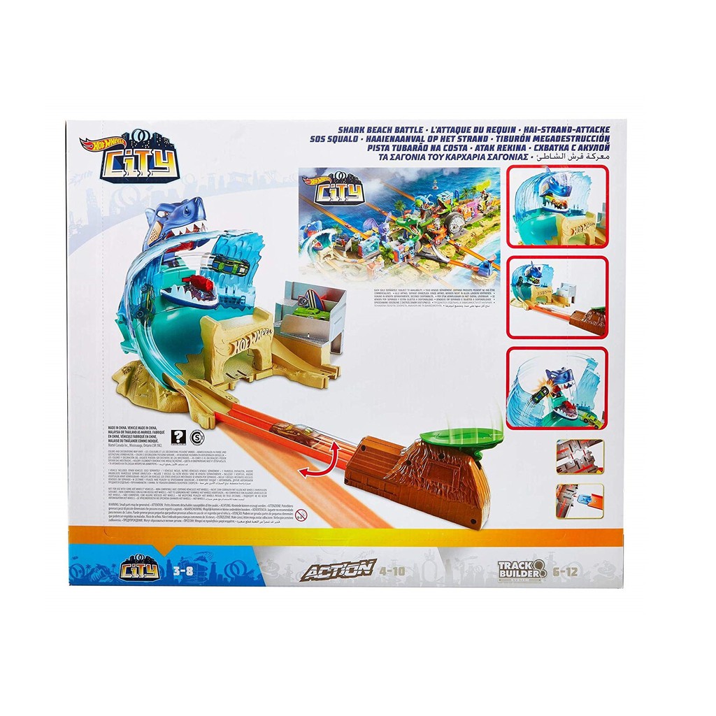 Amazon Com Mattel Hot Wheels Juego De Batalla De Playa De Tiburon De La Ciudad Toys Games