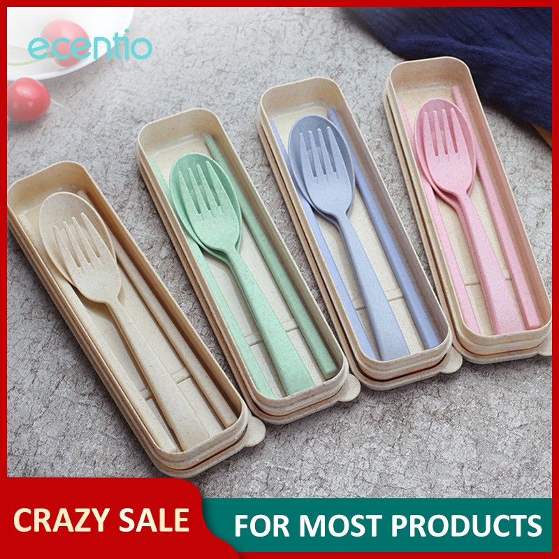 Harga Promo Ecentio 3pcs Set Alat Makan Sendok Garpu Sumpit Wheat Straw Set Cutlery Sendok Shopee Indonesia